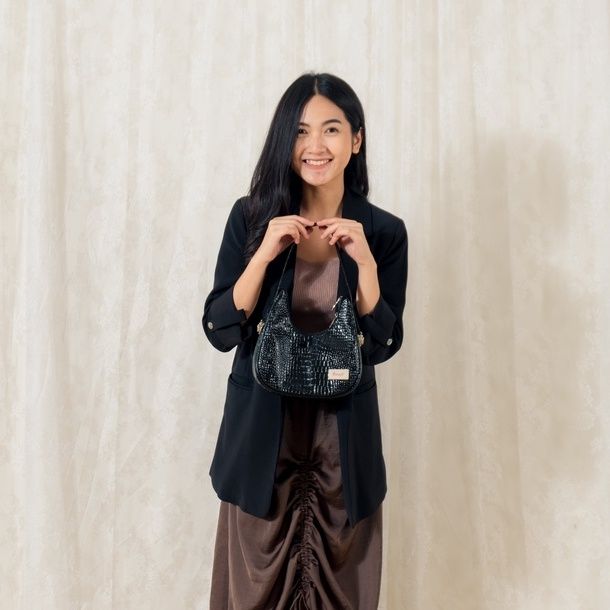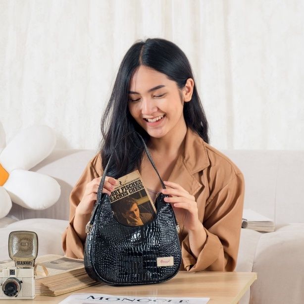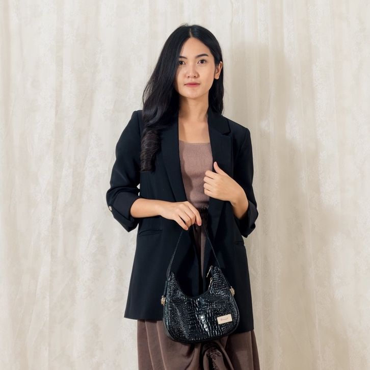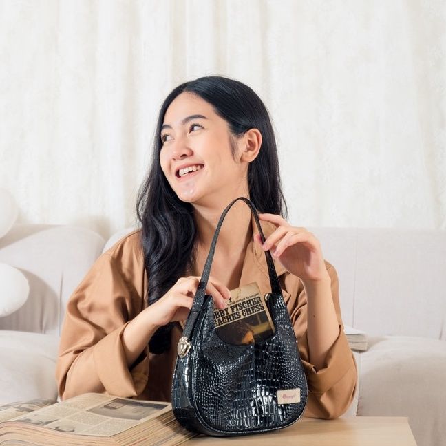 Tas Wanita Kekinian Selempang Bahu Perempuan Sling Bag Shoulderbag Perempuan Kulit Bahan Denim Croco Kasual Kekinian