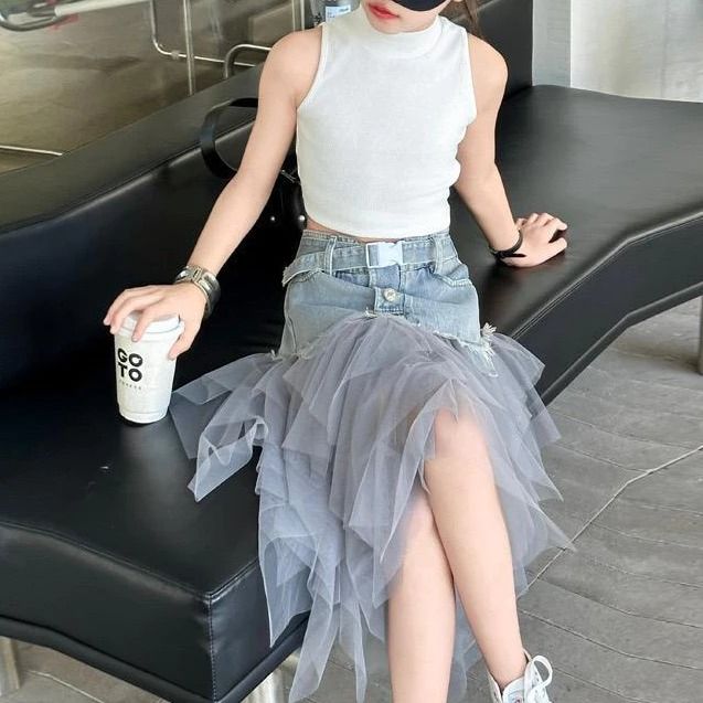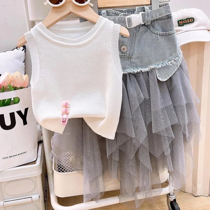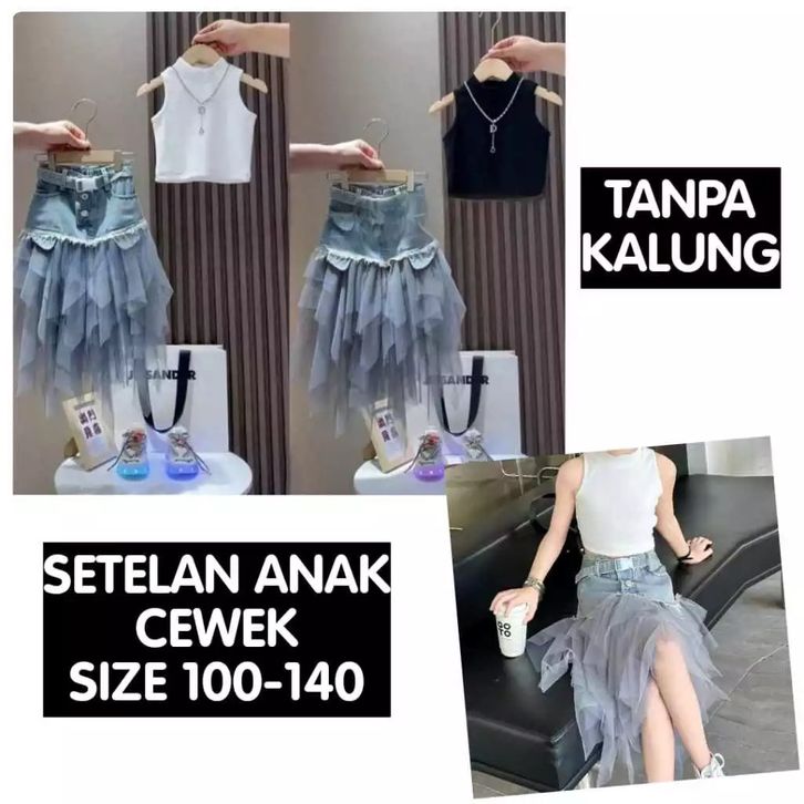 SETELAN ANAK CEWEK KNIT TURTLENECK ROK JEANS TUTU RUMBAI SIZE 100-140