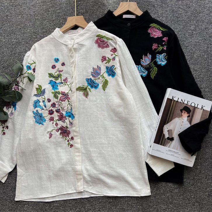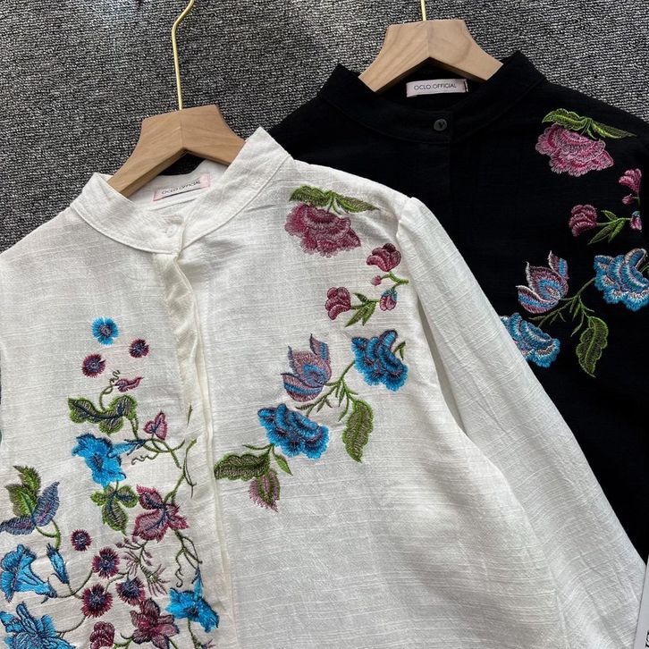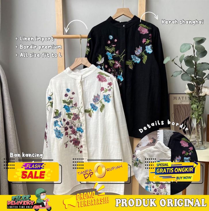 CICILAN OCLO RODLUNA SHIRT ATASAN WANITA LINEN BORDIR FLOWER IMPORT PREMIUM DAILY WEAR