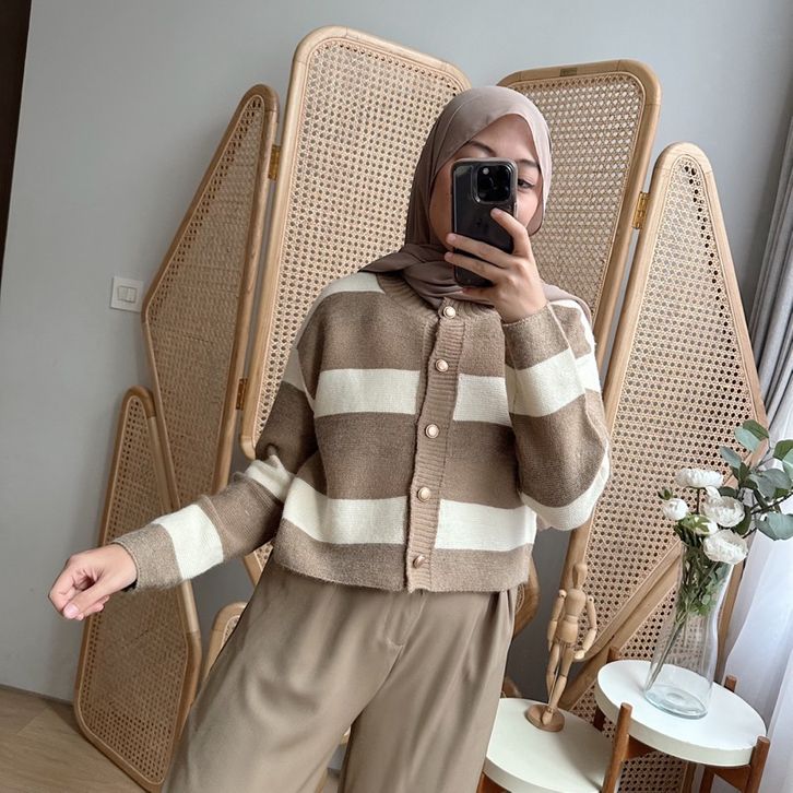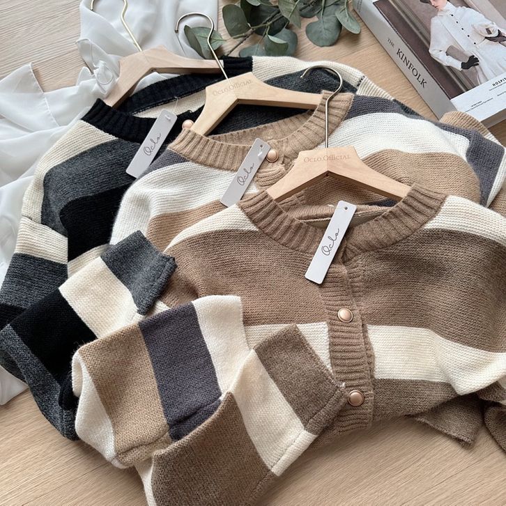 CICILAN OCLO CASSEY CARDI KNIT STRIPE CASUAL BASIC DAILY OUTWEAR
