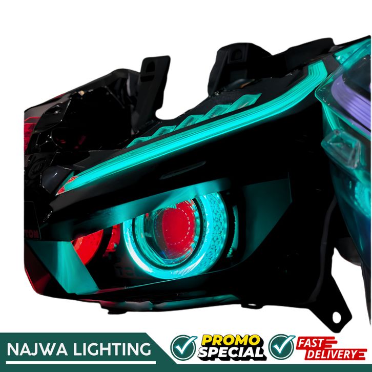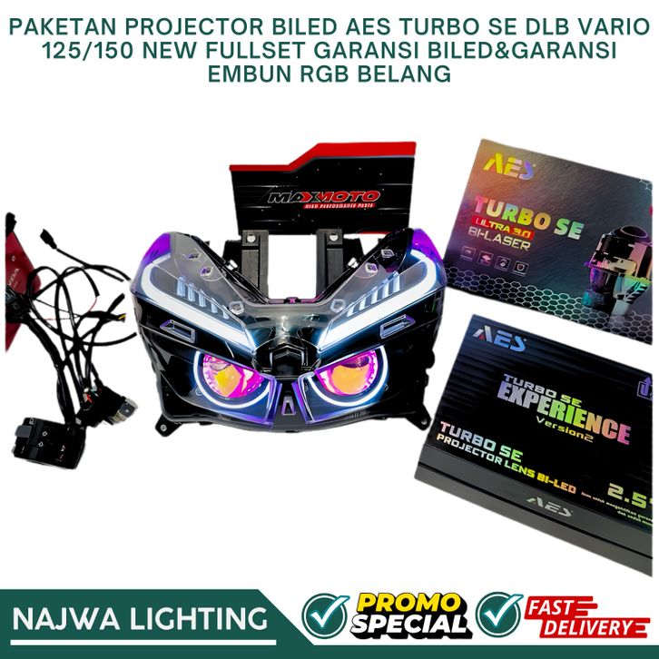 PAKETAN PROJECTOR BILED AES TURBO SE DLB VARIO 125/150 NEW FULLSET GARANSI BILED&GARANSI EMBUN RGB BELANG