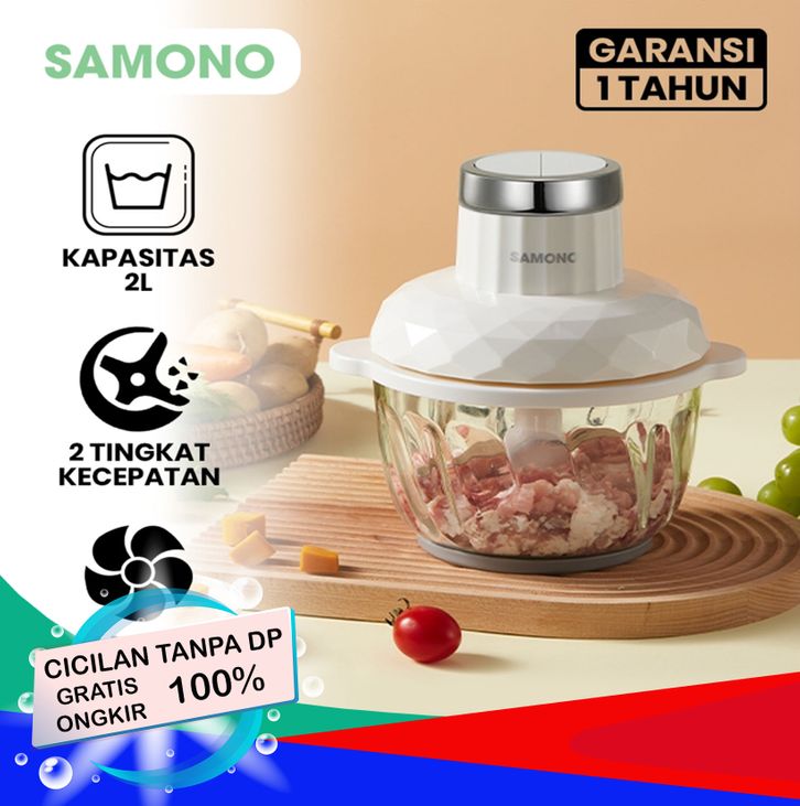 Samono 300W Food Chopper Kaca 2L Food Processor Multifungsi Penggiling Daging 2 Speed Garansi 1 Tahun SW-C300