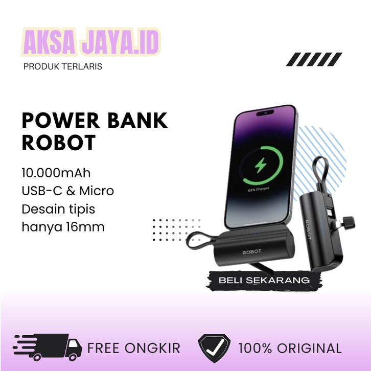 Powerbank Robot 10000mah Original Fast Charging Rp-101l 3 Kabel Built-in Type C Lightning Micro Terlaris Gratis Ongkir