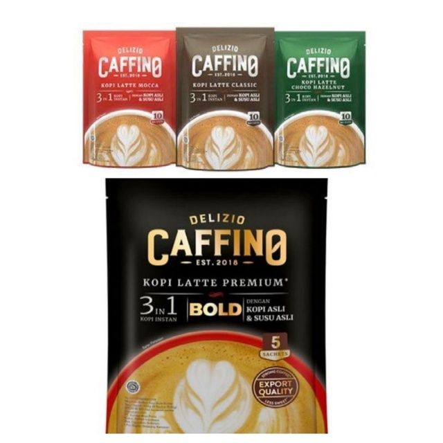 DELIZIO CAFFINO KOPI LATE MOCCA 3 IN 1 KOPI INSTAN KOPI ASLI & SUSU ASLI / HAZELNUT / BOLD / CLASSIC