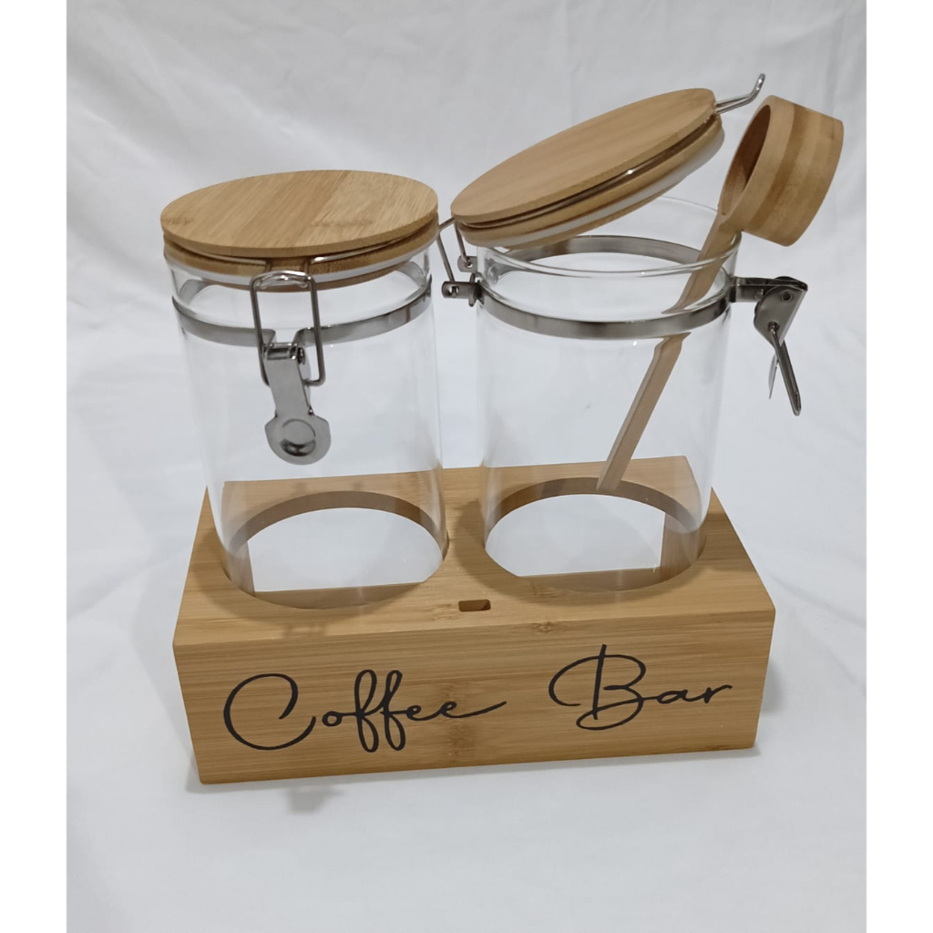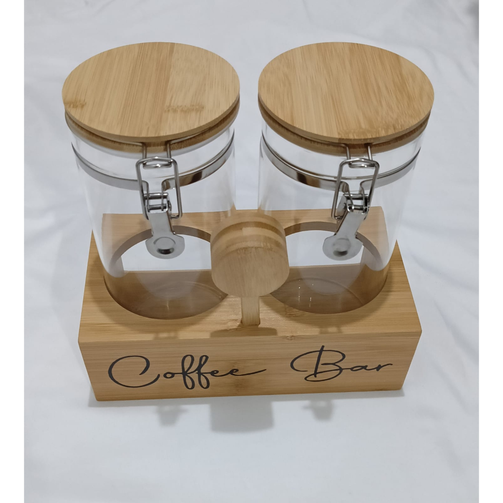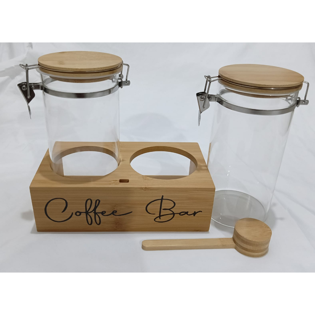 TEMPAT PENYIMPANAN KOPI GULA RAK COFFEE BAR KAYU TOPLES KACA KOPI DAN GULA