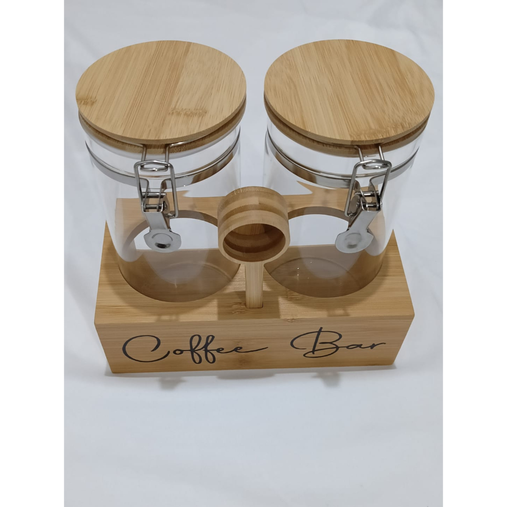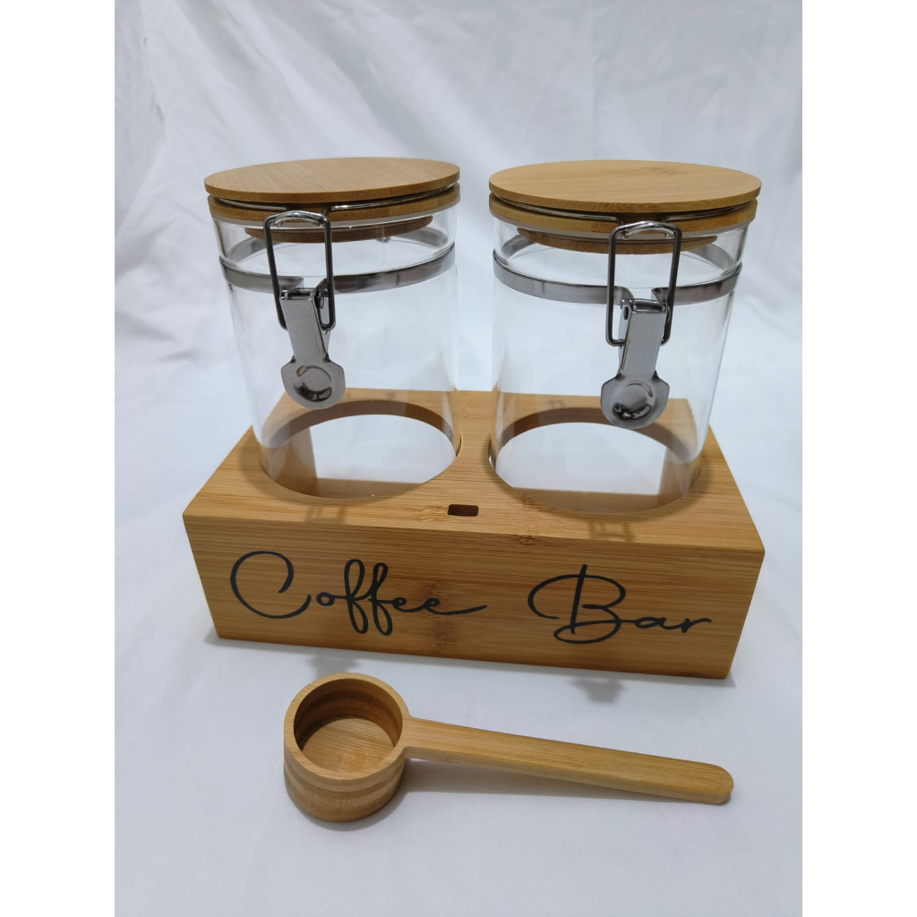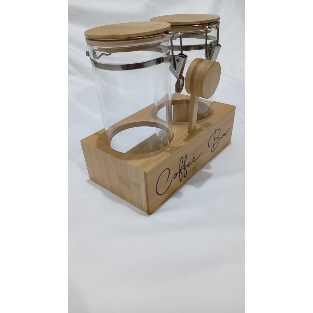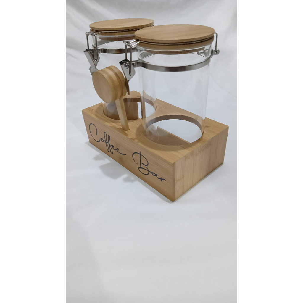 TEMPAT PENYIMPANAN KOPI GULA RAK COFFEE BAR KAYU TOPLES KACA KOPI DAN GULA