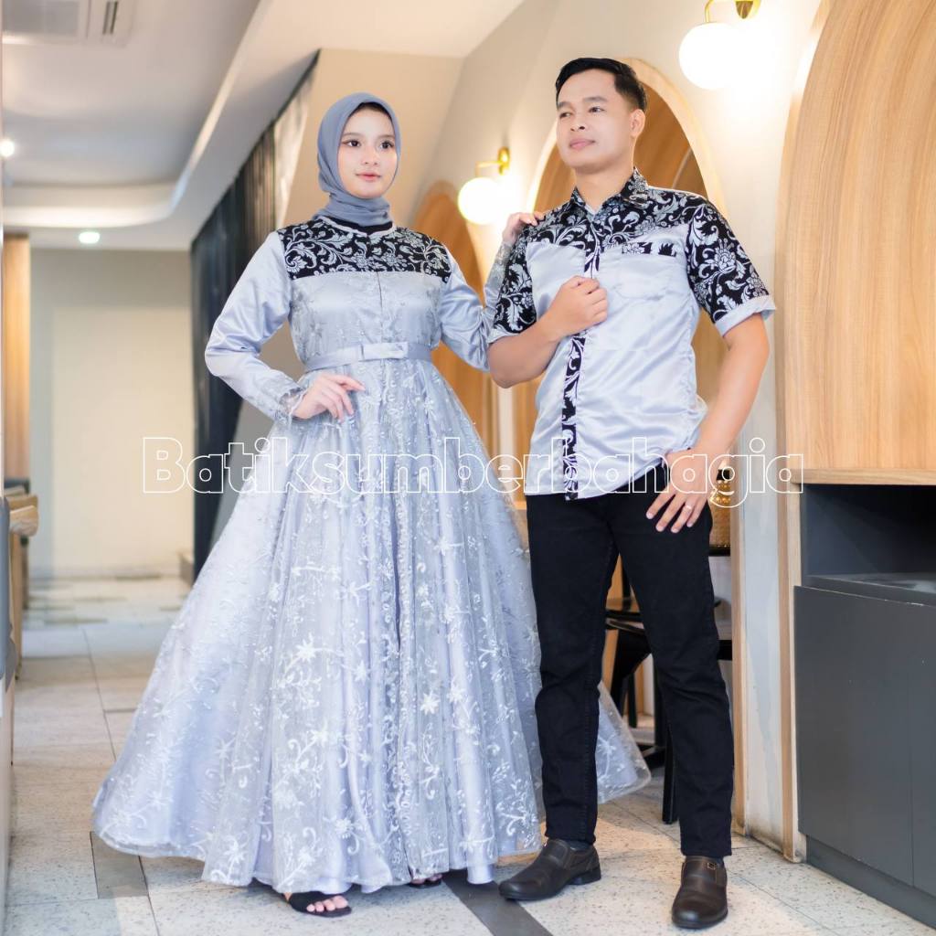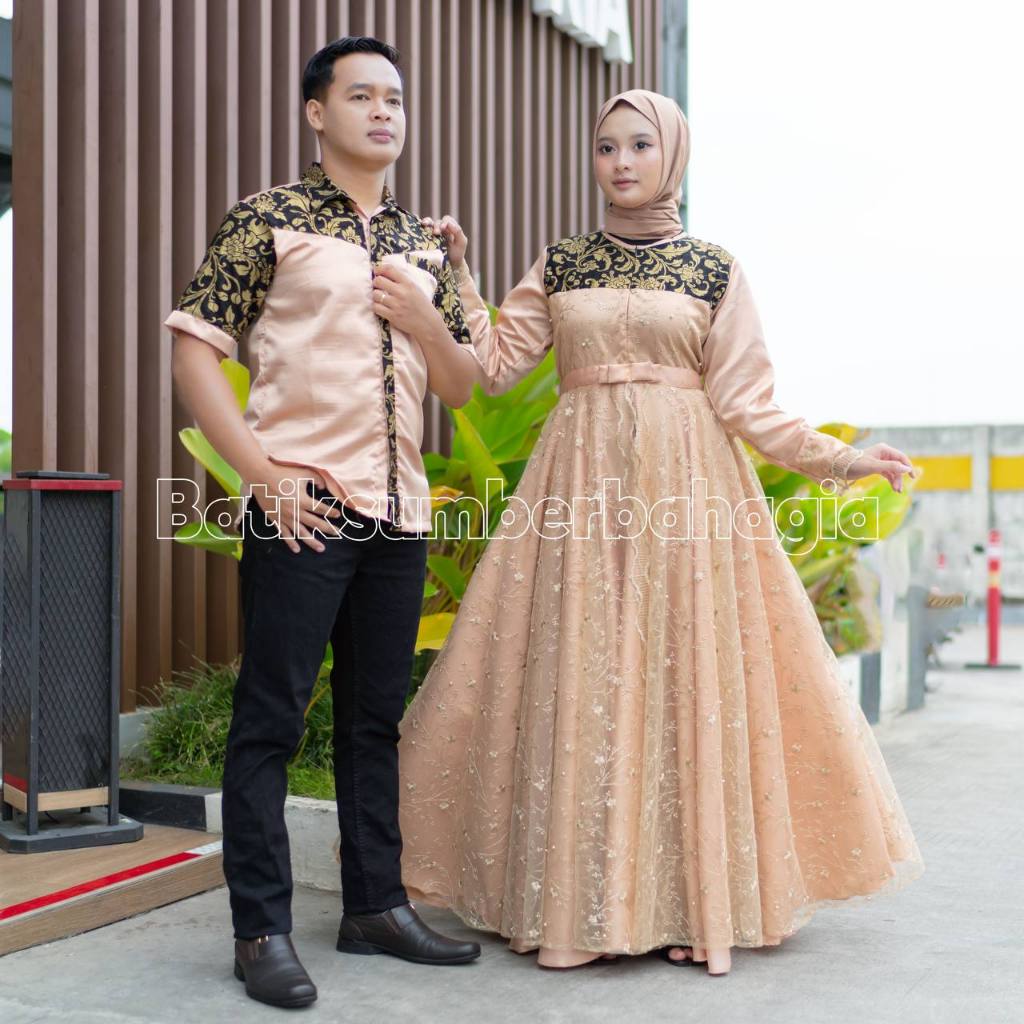 BAJU COUPLE PASANGAN KONDANGAN DRESS GAMIS BRUKAT SYARI MODERN MUSLIM GAMIS KEMEJA COUPLE LEBARAN 2024