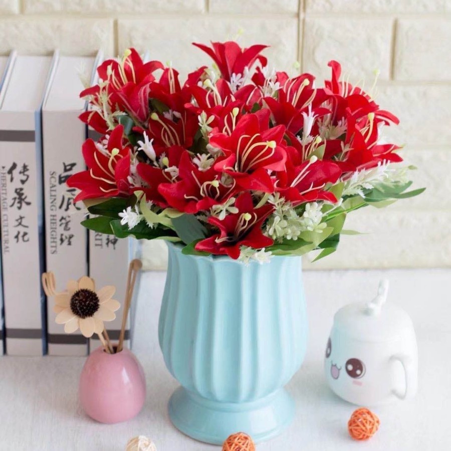 BUNGA HIAS BUNGA LILY ARTIFISIAL TANAMAN ARTIFICIAL BUNGA PLASTIK BUNGA PALSU DEKORASI PESTA MURAH