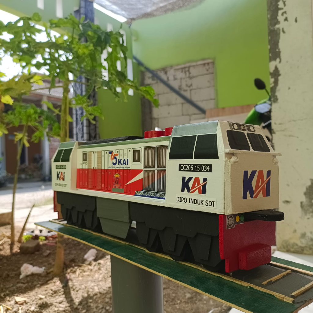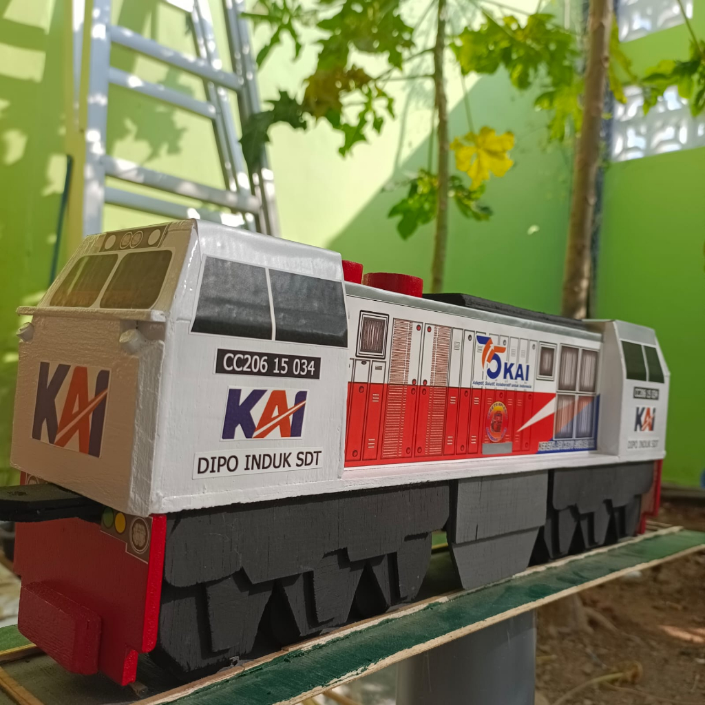 LOKOMOTIF KERETA API CC206 LIVERY 2014 MINIATUR KERETA API KAYU SURABAYA