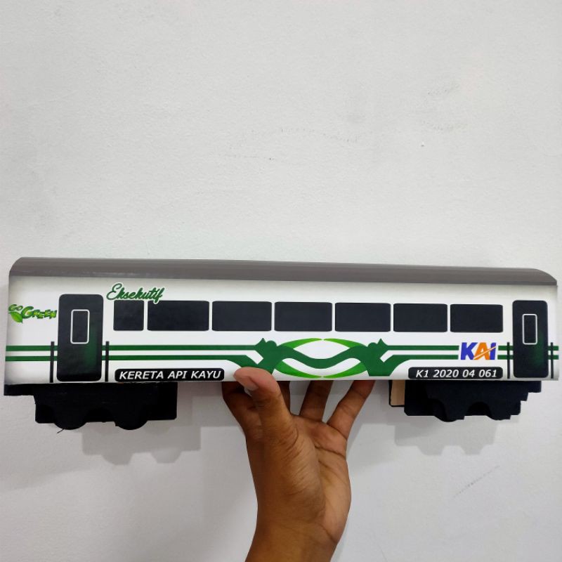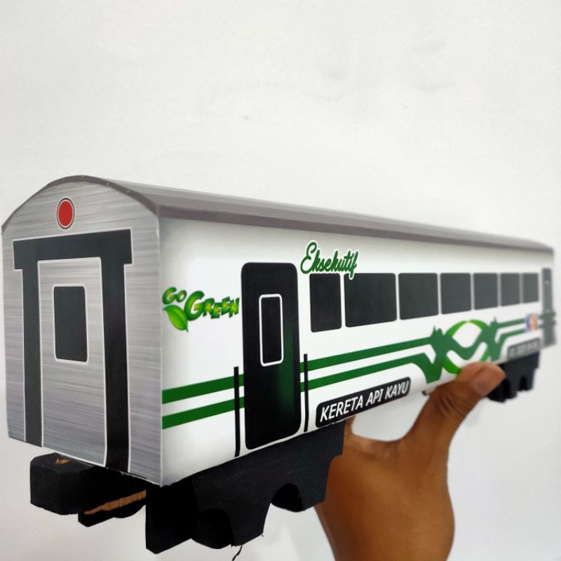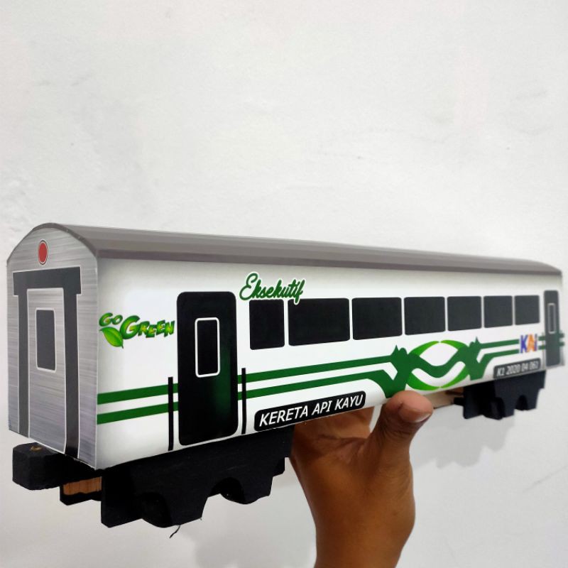 GERBONG KERETA API EKSEKUTIF GO GREEN ARGO BROMO ANGGREK E 61 MINIATUR KERETA API KAYU SURABAY