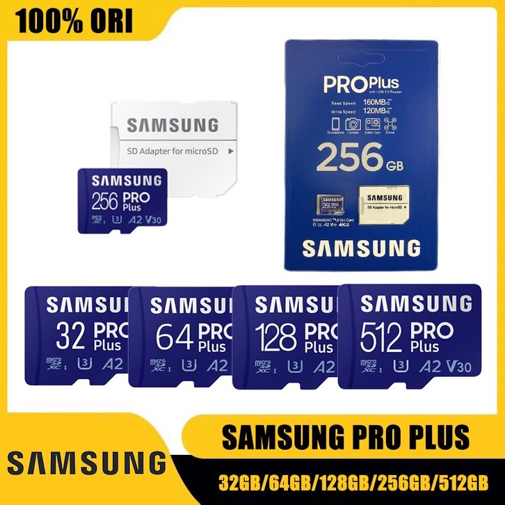 Samsung PRO PLUS Micro SD Card Class 10 U3 A2 V30 4K 32GB/64GB/128GB/256GB/512GB Memory Card Kartu Memori Transfer hi