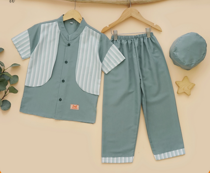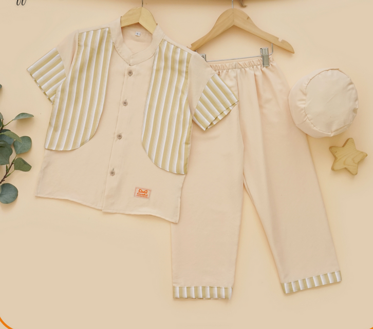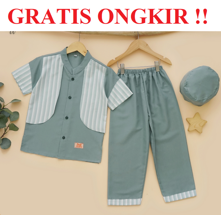 Koko Anak One Set Emirat Baju & Celana Bonus Peci 0 1 2 4 5 6 7 8 9 Tahun