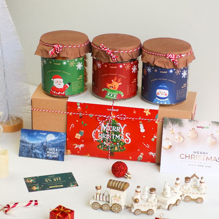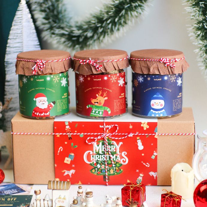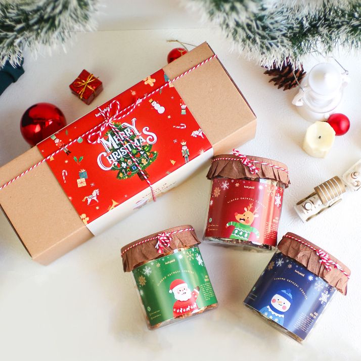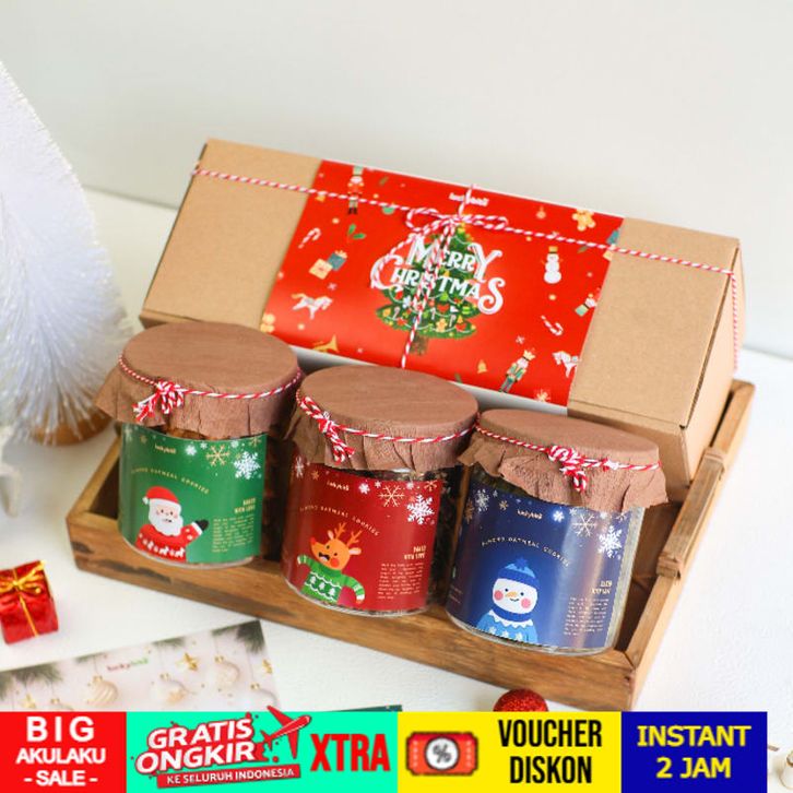 PROMO FREE ONGKIR Hampers Natal / Christmas Hampers - Oatmeal Cookies 3 Jar + FREE KARTU + TALI + BUBBLE WRAP
