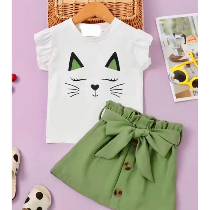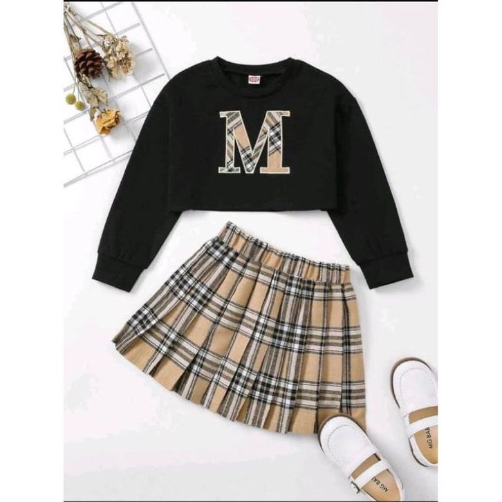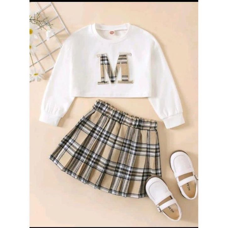 Setelan Baju Rok Anak Perempuan Fashion Pakaian Kasual Kekinian Motif Hewan Polos Kotak Bahan Katun Premium