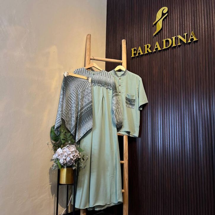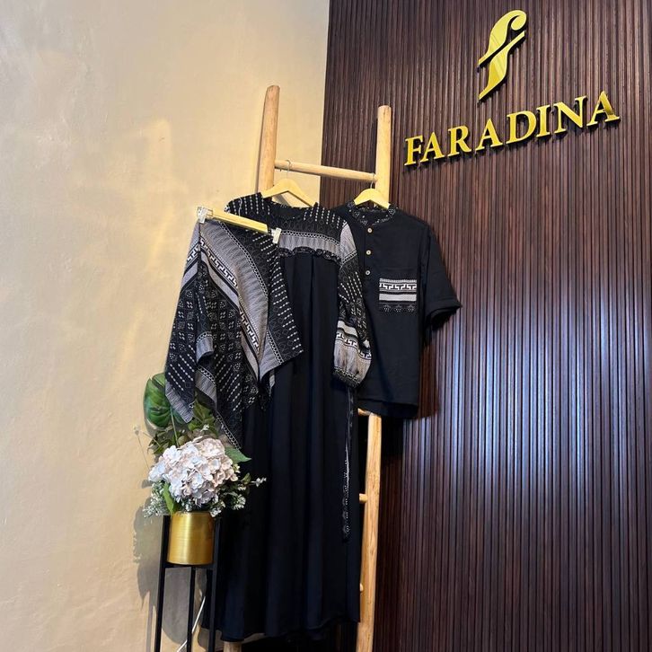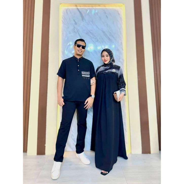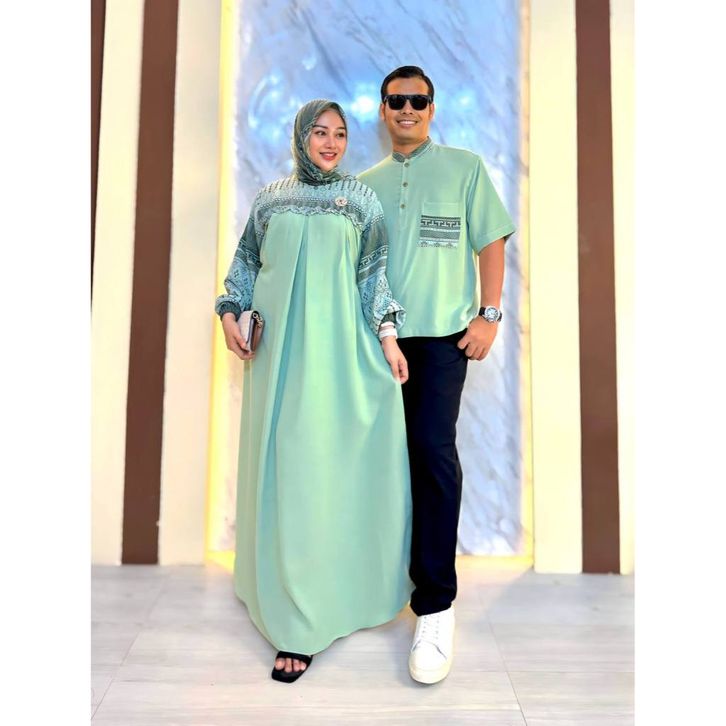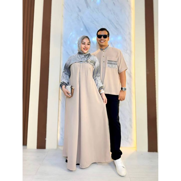 Ellena Gamis Set Couple Free Hijab Segiempat Motif Ethnic Matt. Cey Bangkok Grade A Premium by Faradina
