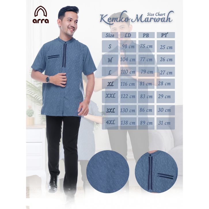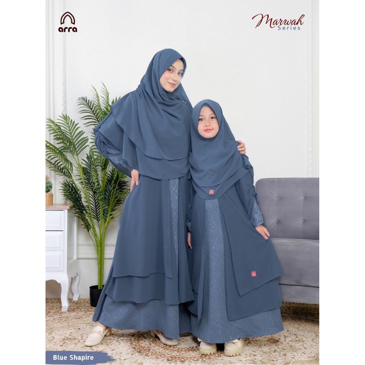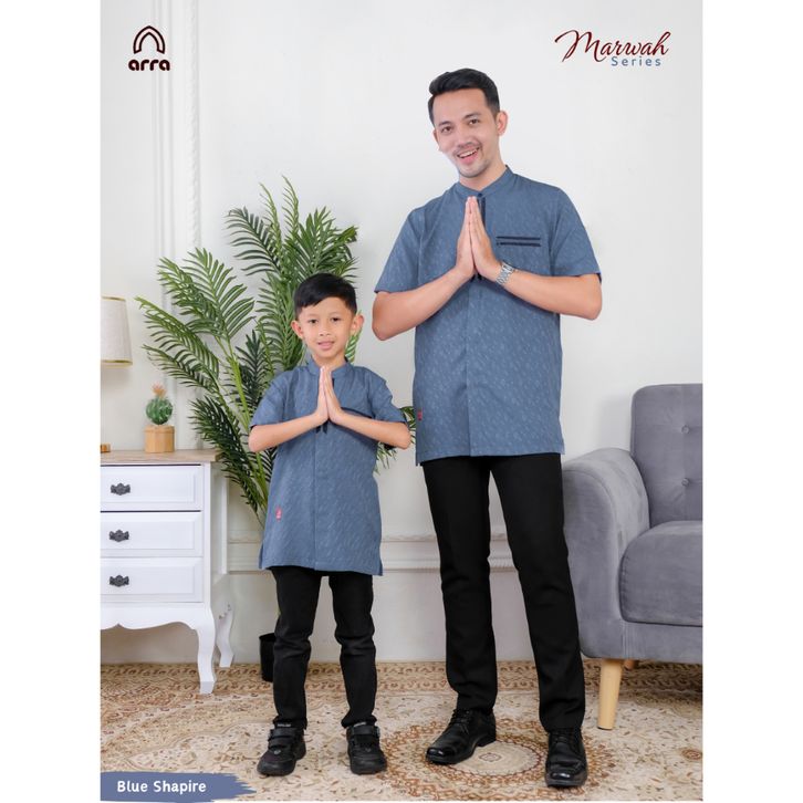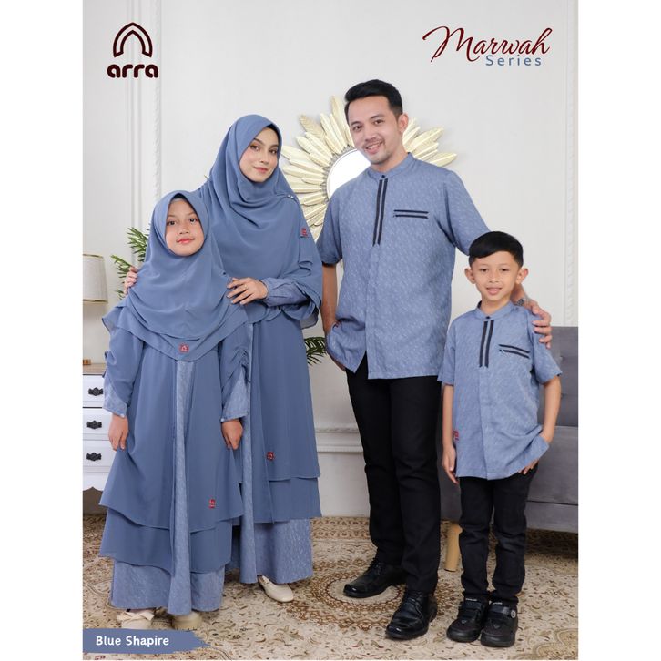 Sarimbit Baju Koko Gamis Couple Cauple Keluarga ARRA Series MARWAH Warna Biru Blue Sapphire Original Brand ARRA