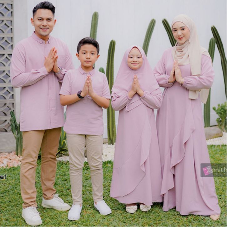 Zenitha Sarimbit Jenna Dusty Pink - Sarimbit Keluarga Lebaran Couple Family Set Premium