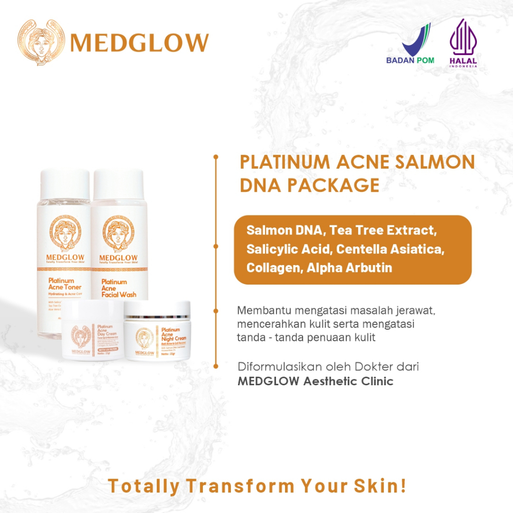 MEDGLOW CLINIC PLATINUM ACNE SALMON DNA PACKAGE + BONUS TAS KULIT | PAKET SKINCARE KRIM PAGI MALAM