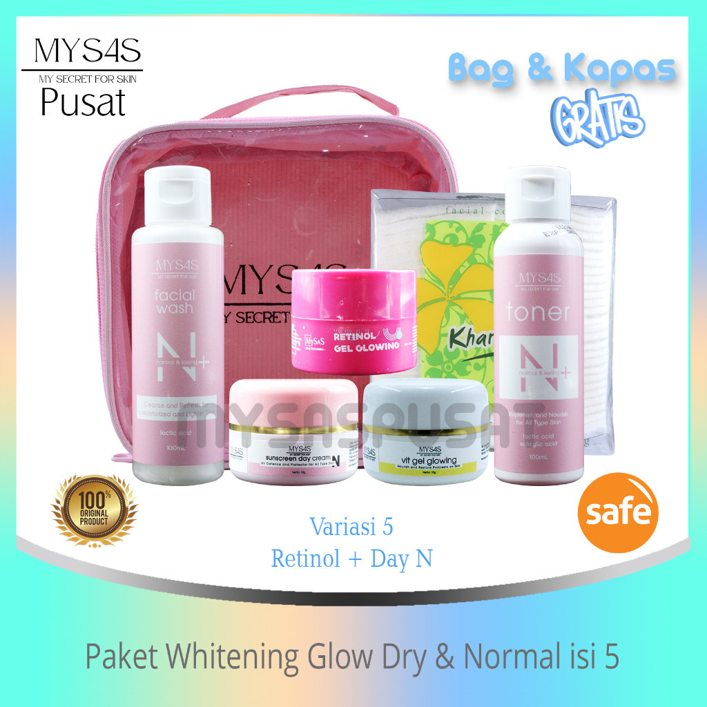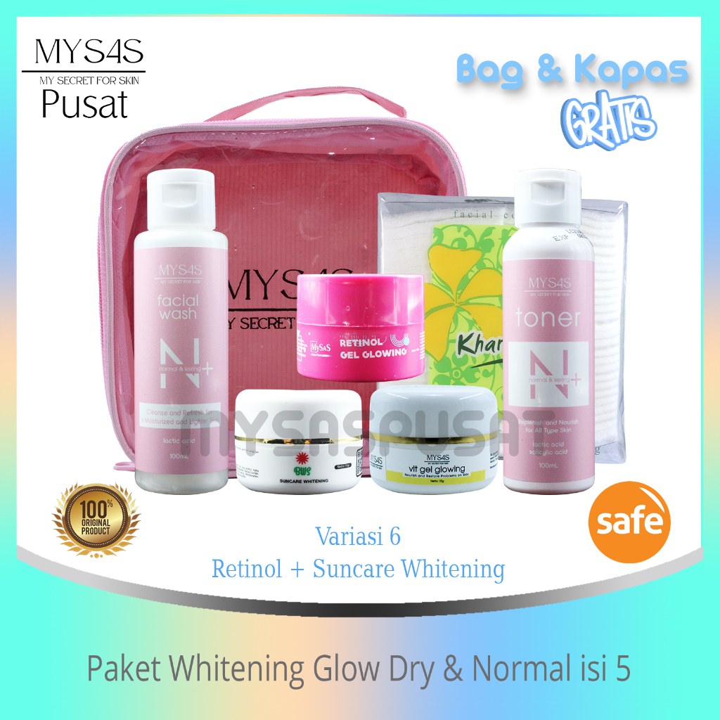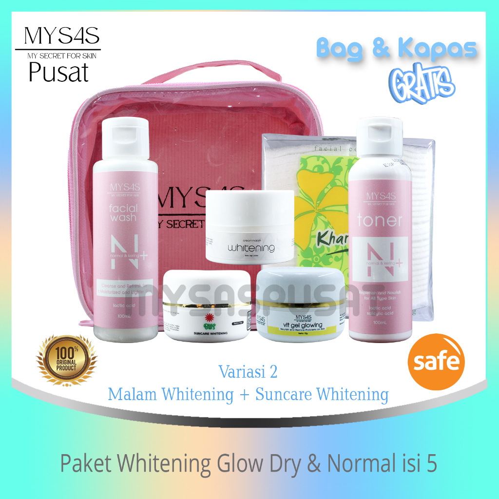 MYSAS SKINCARE PAKET WHITENING GLOW NORMAL KERING ISI 5 ORIGINAL TERMURAH GLOWING NATURAL BPOM
