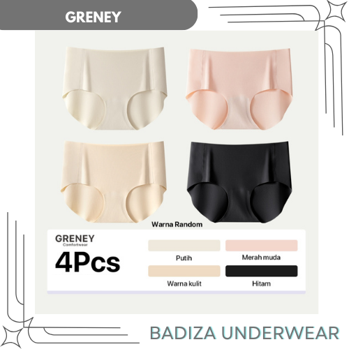 Paket Celana Dalam Wanita GRENEY (4PCS) CD Adem Seamless Celana Dalam Cotton Wanita Panties Sexy Warna Random-89634