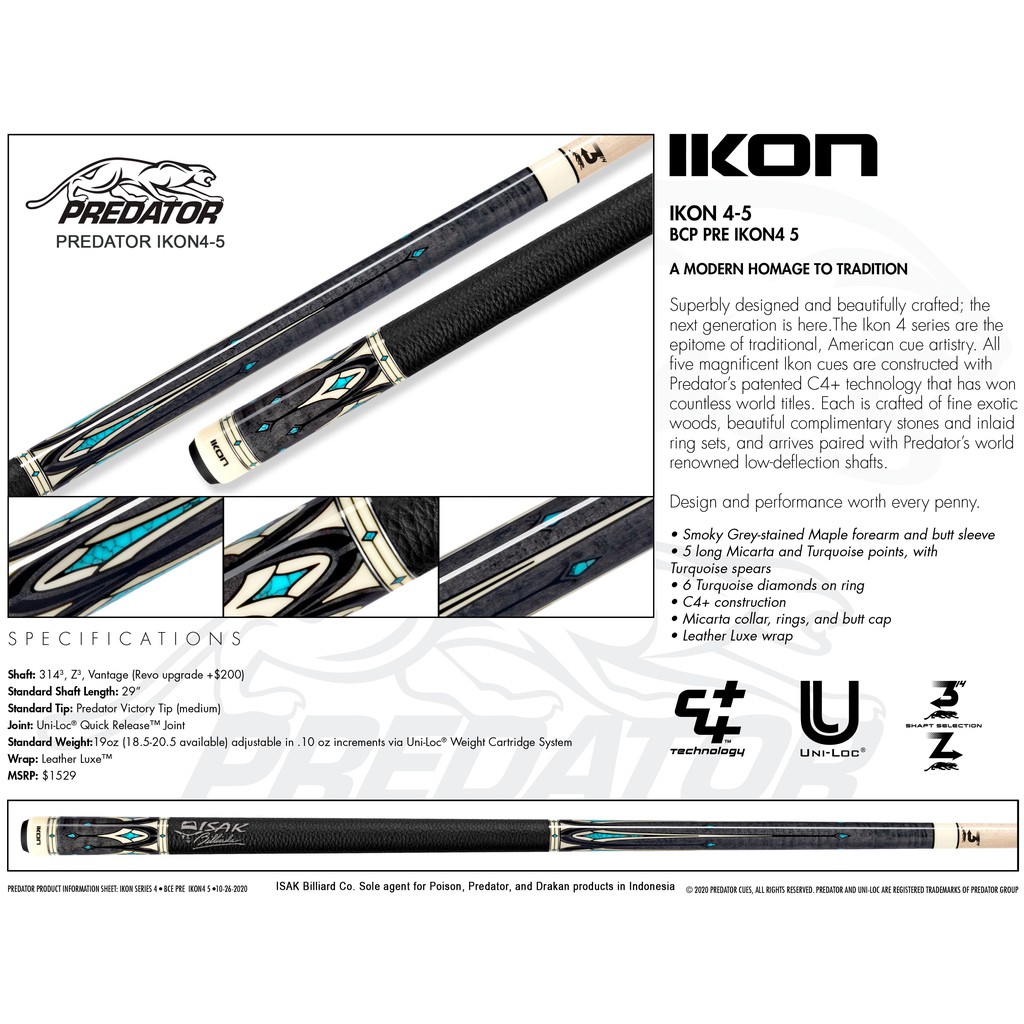 PREDATOR IKON4-5 UNILOC | 314-3 Z-3 LOW DEFLECTION CUE STICK STIK BILLIARD BILIAR