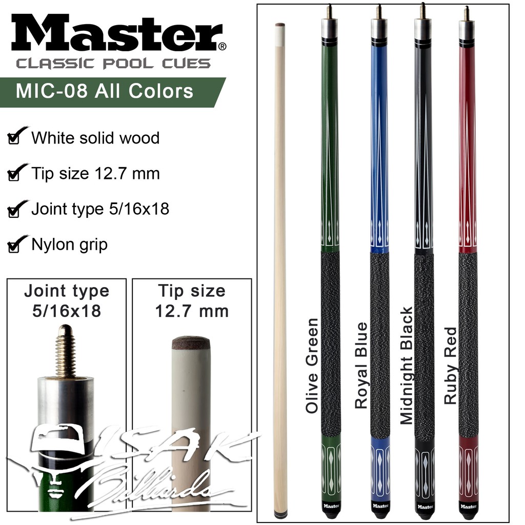 MASTER MIC-08 GREEN - POOL BILLIARD CUE STICK STIK BILIAR BILYARD
