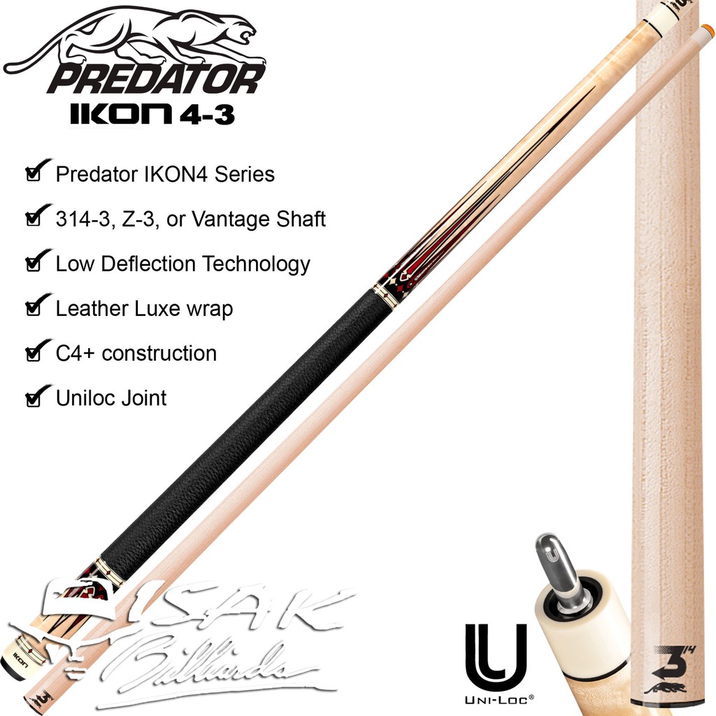 PREDATOR IKON4-3 UNILOC | 314-3 Z-3 LOW DEFLECTION CUE STICK STIK BILLIARD BILIAR