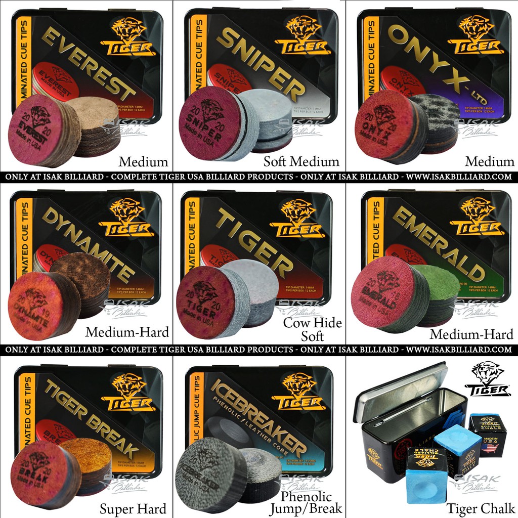 DYNAMITE CUE TIP BY TIGER USA - 14MM LAYER TIPS LAPIS KEPALA STICK BILLIARD POOL ASLI AMERIKA