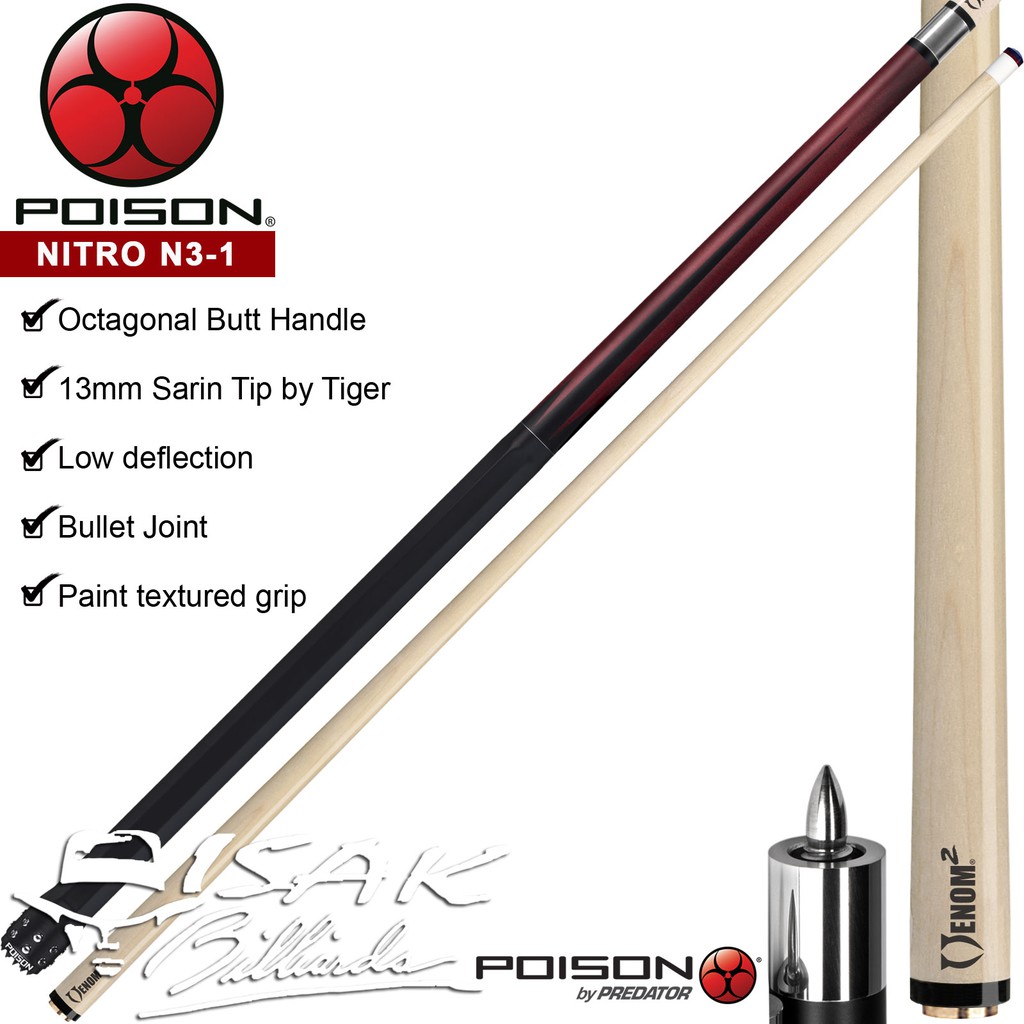 POISON NITRO N3-1 POOL CUE - BILLIARD STICK STIK BILIAR LOW DEFLECTION CUES BY PREDATOR ASLI