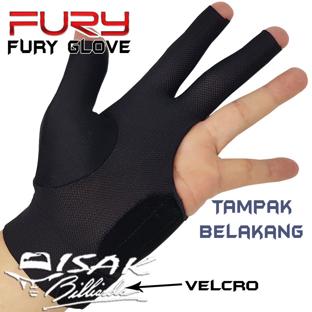 FURY PRO GLOVE - BLACK OPEN FINGER - SARUNG TANGAN BILIAR BILLIARD GLOVES HITAM