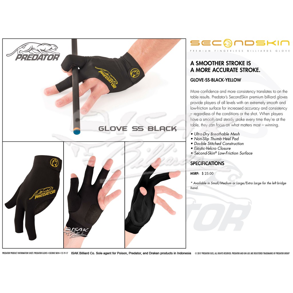 PREDATOR GLOVE SS BLACK - S/M - SARUNG TANGAN BILLIARD BILIAR SECOND SKIN POOL GLOVES