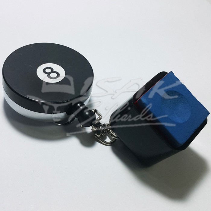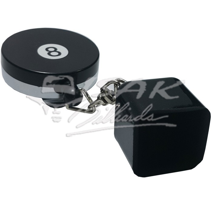 BILLIARD CHALK HOLDER - WITH RETRACTABLE CABLE - 8 BALL DESIGN
