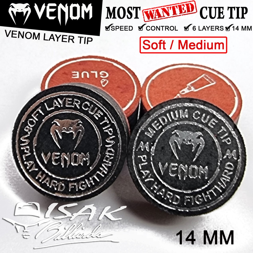 VENOM BLACK CUE TIP - 14 MM PRO LAYER BILLIARD STICK TIPS STIK BILIAR LAPIS