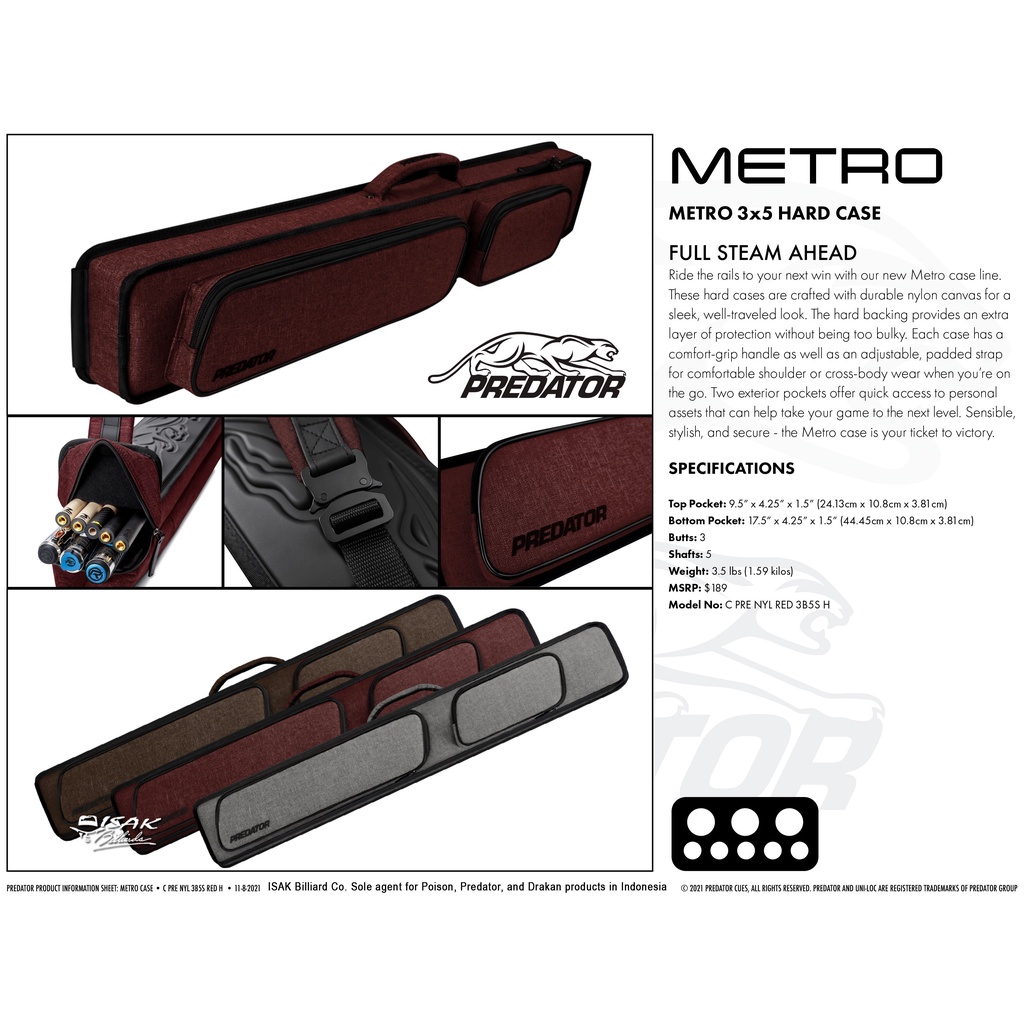 PREDATOR METRO 3X5 RED HARD CASE - TAS STICK BILLIARD POOL CUE SARUNG BILIAR MERAH ASLI