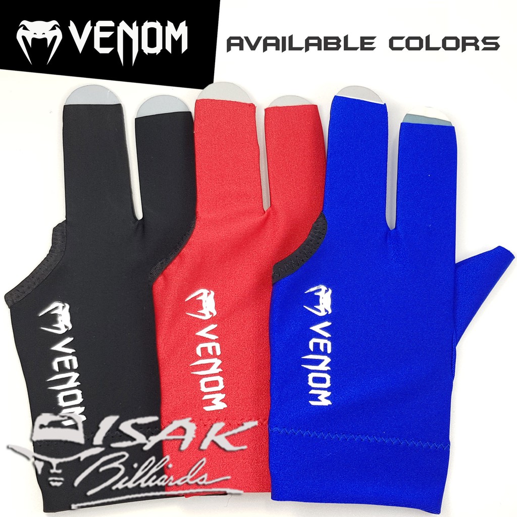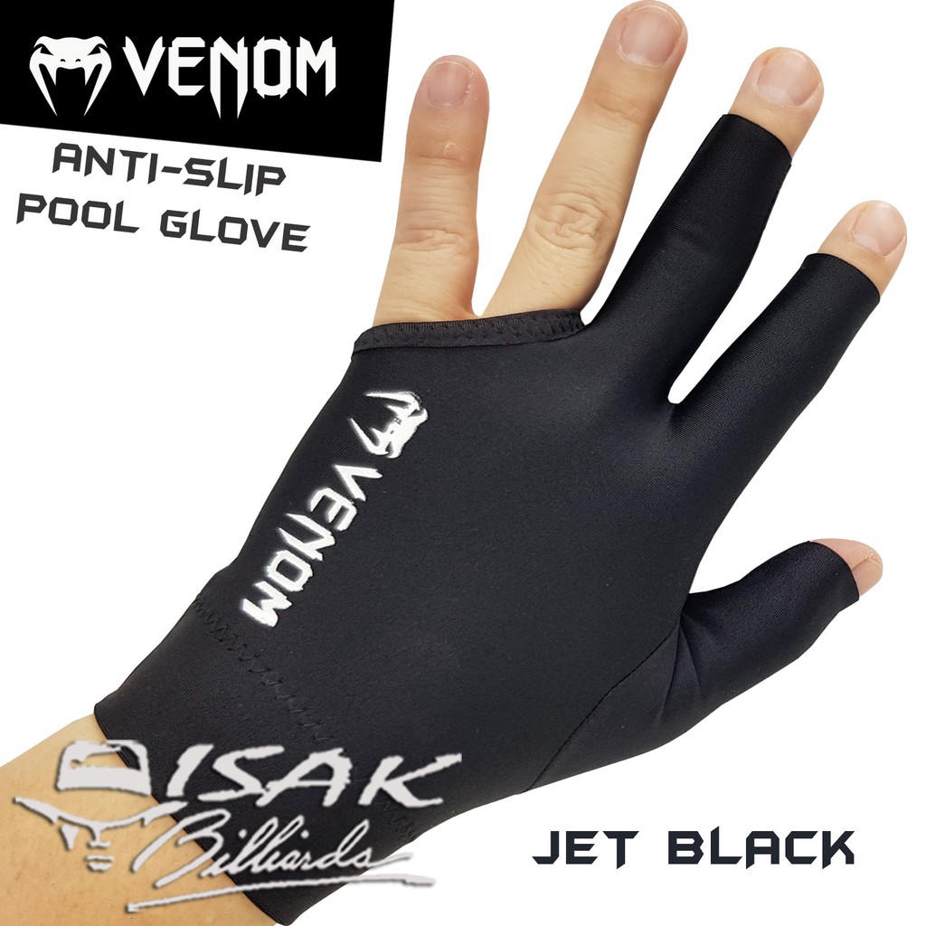 VENOM POOL GLOVE - ANTI SLIP BLACK - SARUNG TANGAN BILIAR BILLIARD OPEN FINGER GLOVES