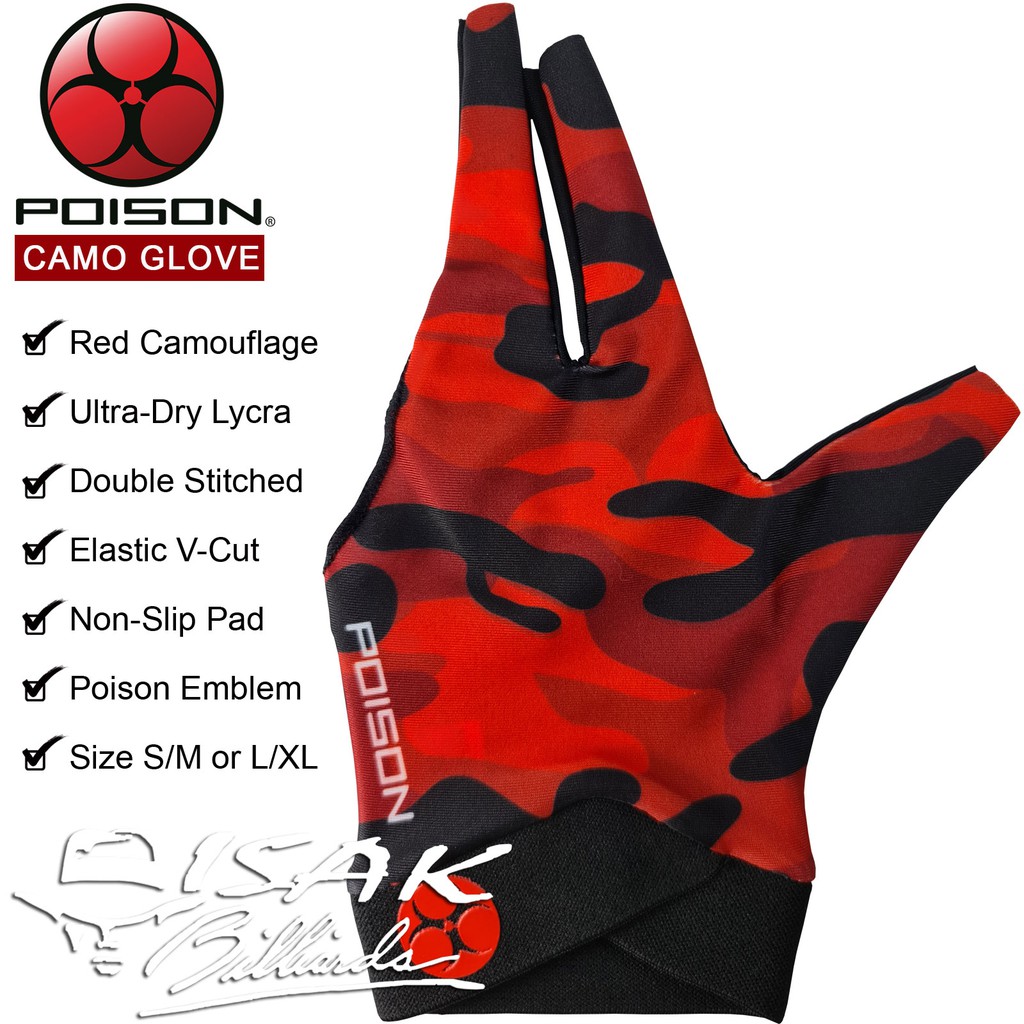 POISON CAMO GLOVE RED L/XL - SARUNG TANGAN POOL BILLIARD GLOVES ULTRA DRY LYCRA LARGE EXTRA XL