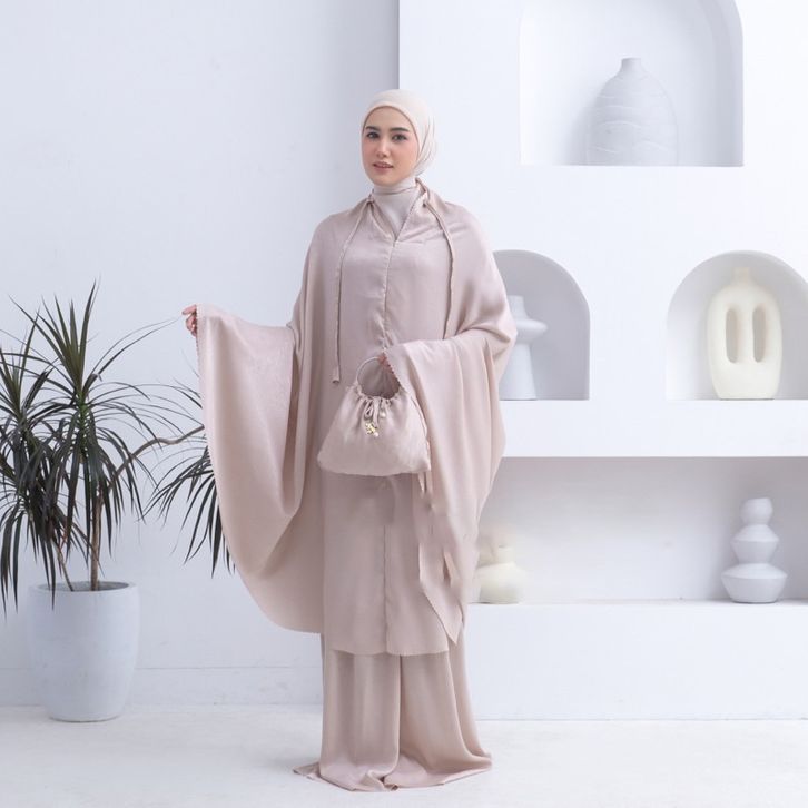 Mukena Dewasa 2in1 Premium Santorini Shimer Lasercut