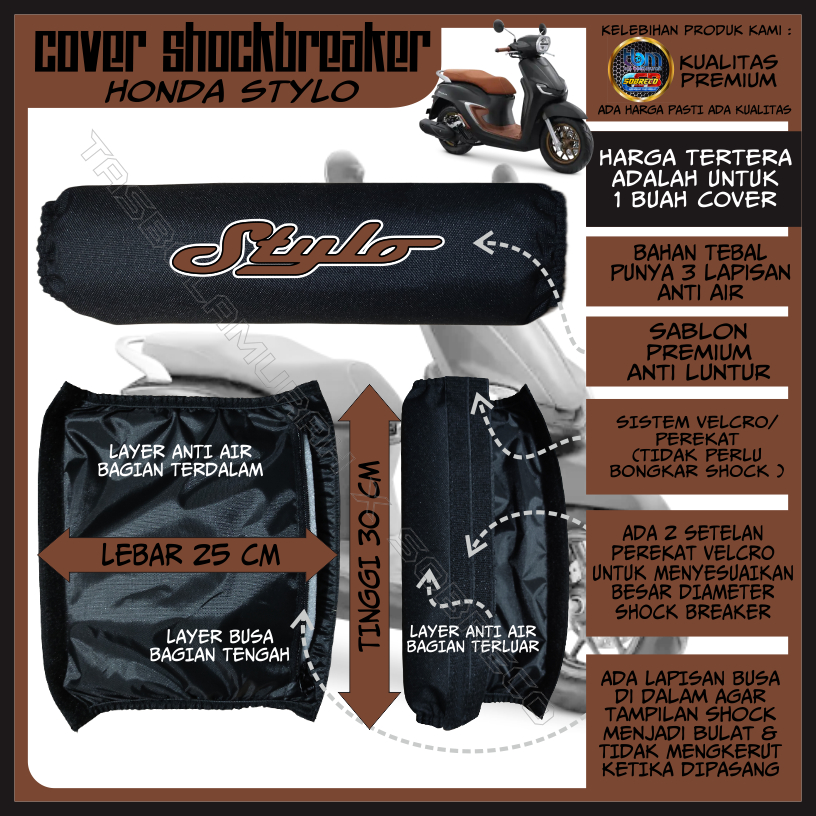 SARUNG PELINDUNG PENUTUP COVER SOKBREKER SHOCK BREAKER BELAKANG MOTOR HONDA STYLO 160 ANTI AIR