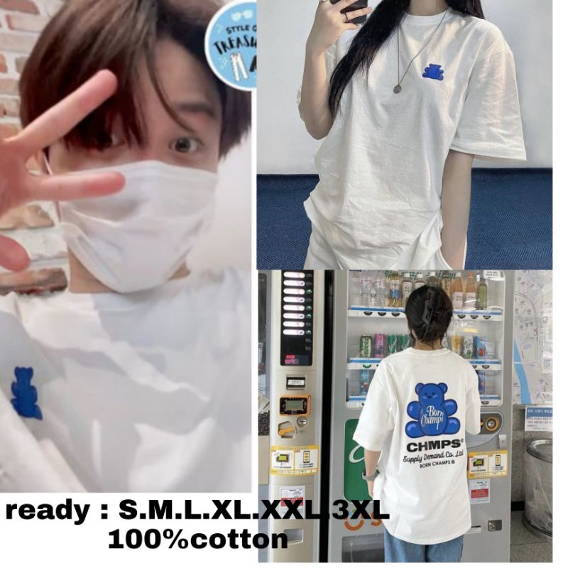 KAOS KOREAN KPOP JUNGWAN BLUE JELLY BEAR PRINT DEPAN BELAKANG