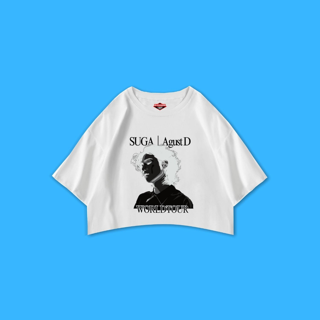 CROP TEE SUGA WASHED T-SHIRT OVERSIZE SLIM-FIT CROP T0P SUGA AGUST D SUGA