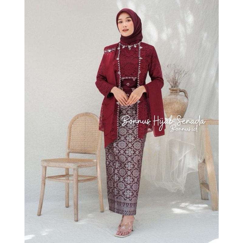 KEBAYA COUPLE KEBAYA KUTUBARU LAKSMI SERIES KEBAYA WISUDA LAMARAN TUNANGAN SET TUNIK BATIK BAJU COUPLE KO BONNUS HIJAB -