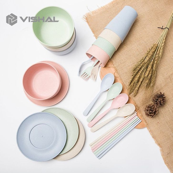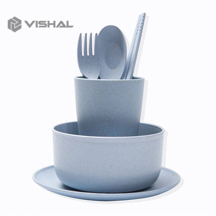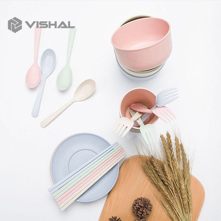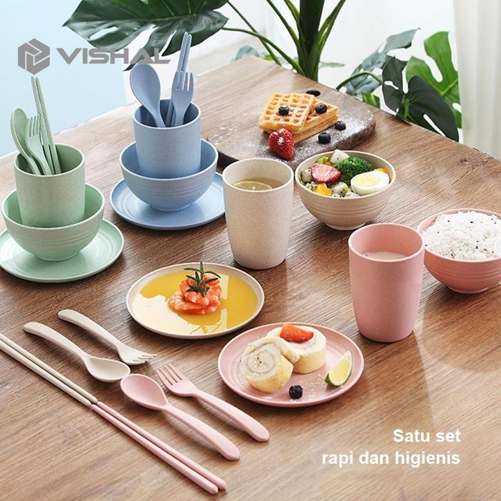 Gandum 6 Pcs Peralatan Makan Set Mangkuk / Piring / Sendok Peralatan Piring Makan Keluarga