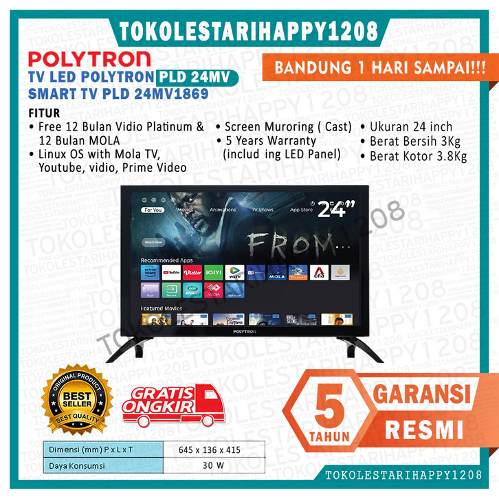 (FREE ONGKIR JAWA BARAT JABOTABEK) TV LED POLYTRON SMART TV LITE 24 INCH PLD 24CV1869 GARANSI RESMI