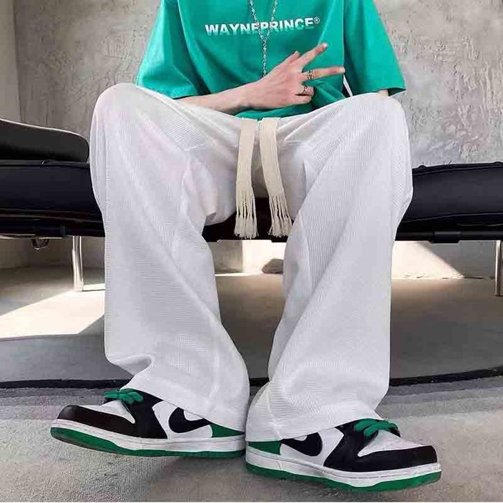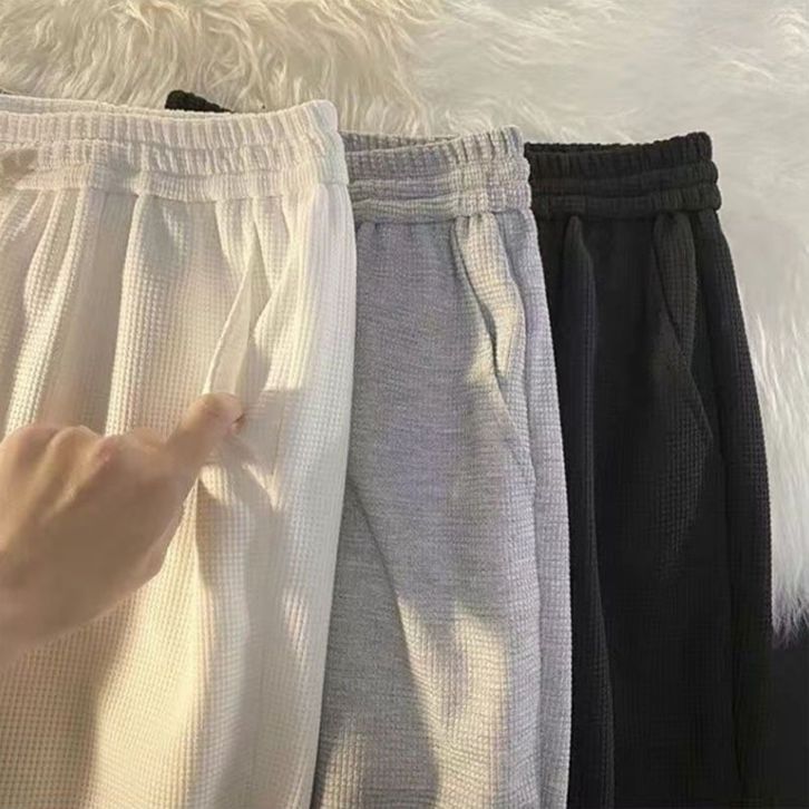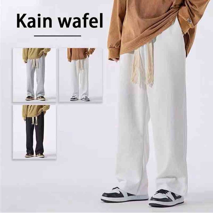 Celana Panjang Polos Pria Kain Wafel celana putih pria celana trening panjang pria dewasa terbaru 2024 celana kulot pri