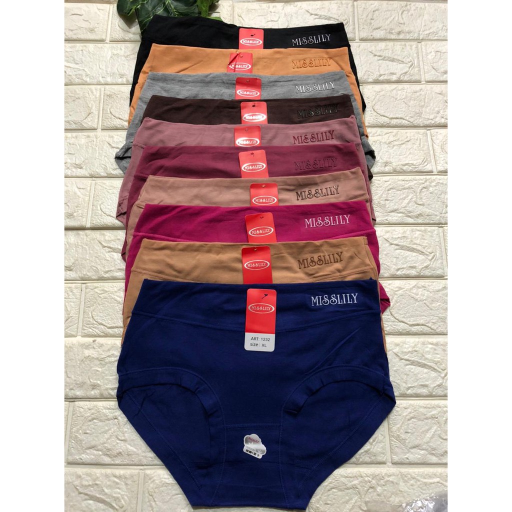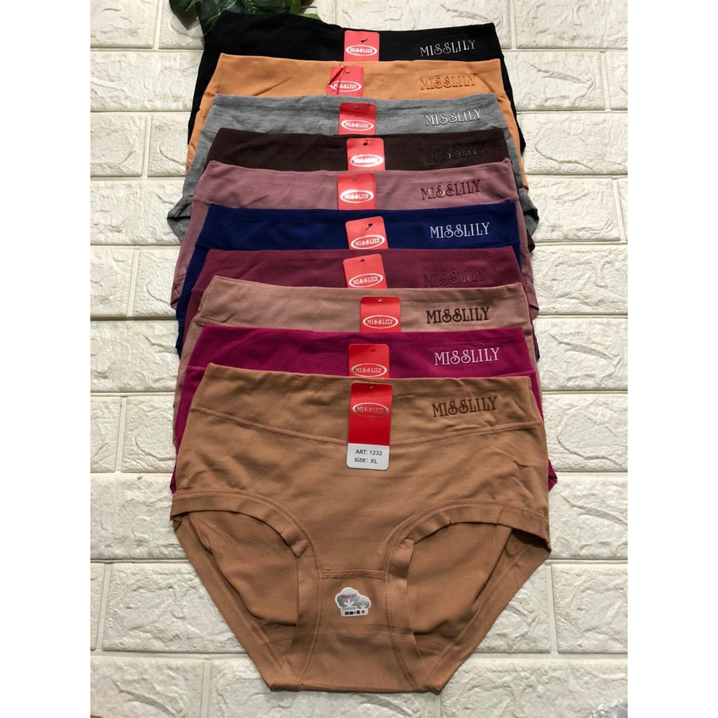 6 PCS MISSLILY CELANA DALAM WANITA KATUN STRECTH WARNA TUA GELAP ART 1388 1888