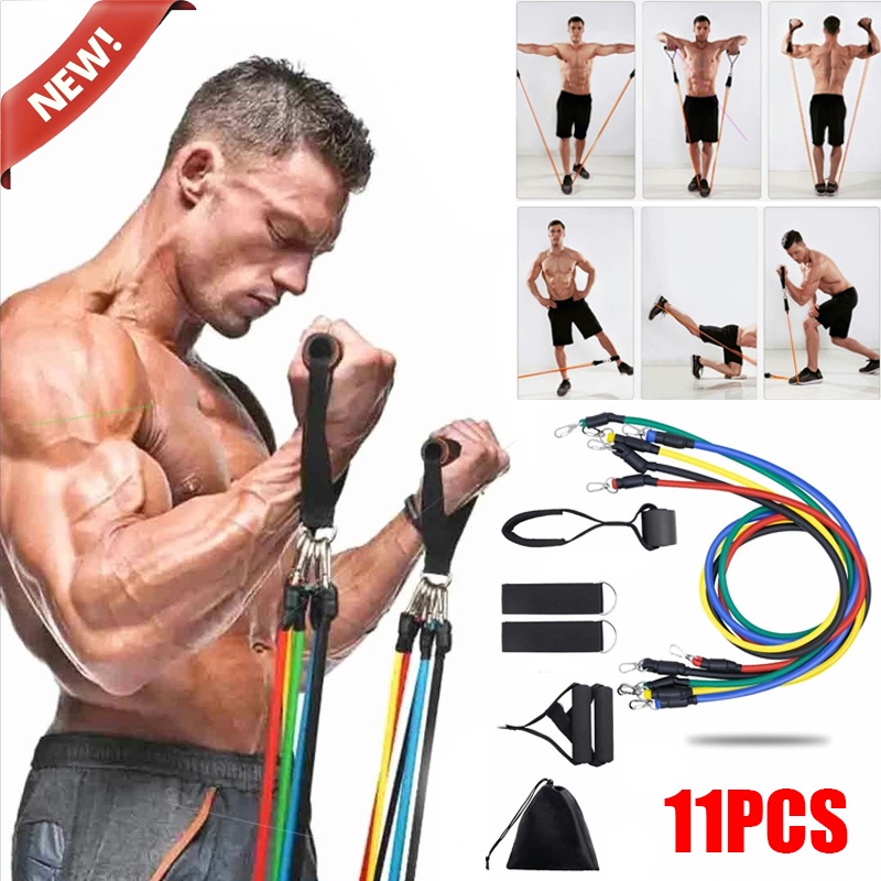 NEW POWER RESISTANCE BAND 11 PCS SET TALI TARIK KARET GYM YOGA FITNESS ALAT OLAHRAGA CHEST SHOULDER