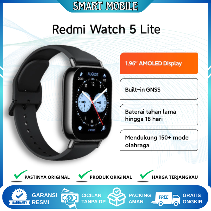 Smartwatch Xiaomi Redmi Watch 5 Lite 1.96" Amoled Display Built In Gnss Mode Olahraga Original Official Store