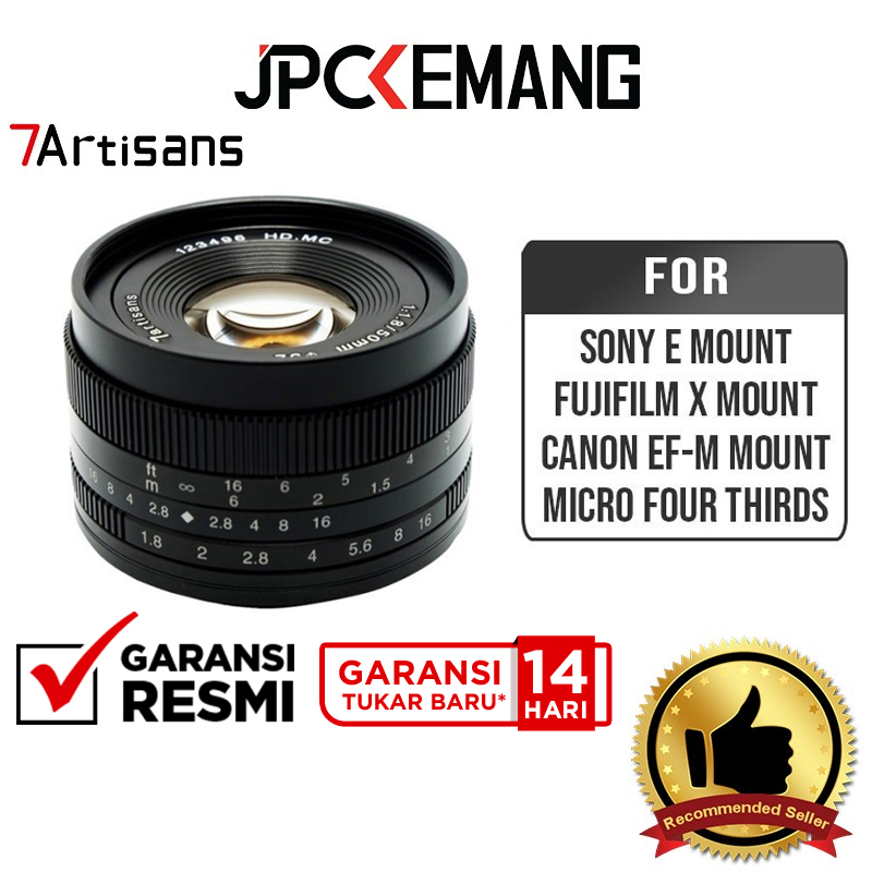 7ARTISANS 50MM F1.8 FOR MICRO FOUR THIRDS SONY E FUJIFILM X MOUNT CANON EF-M GARANSI RESMI