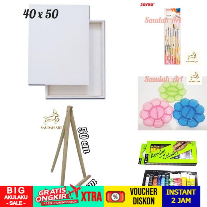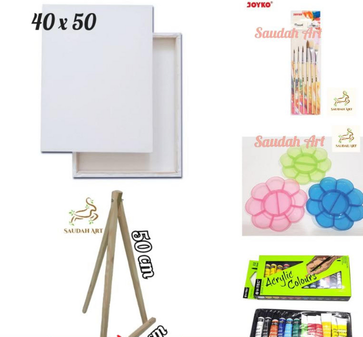Paket Lukis Lengkap (kanvas 40x50,kuas,palet,cat akrilik,easel 30x50)