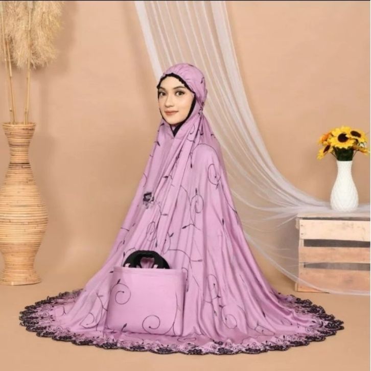 RAMADAN MANAH BUSANA MUKENA DEWASA GRACELLA (PREMIUM) FULLBORDIR BUNGA TERATAI MEWAH TERMURAH